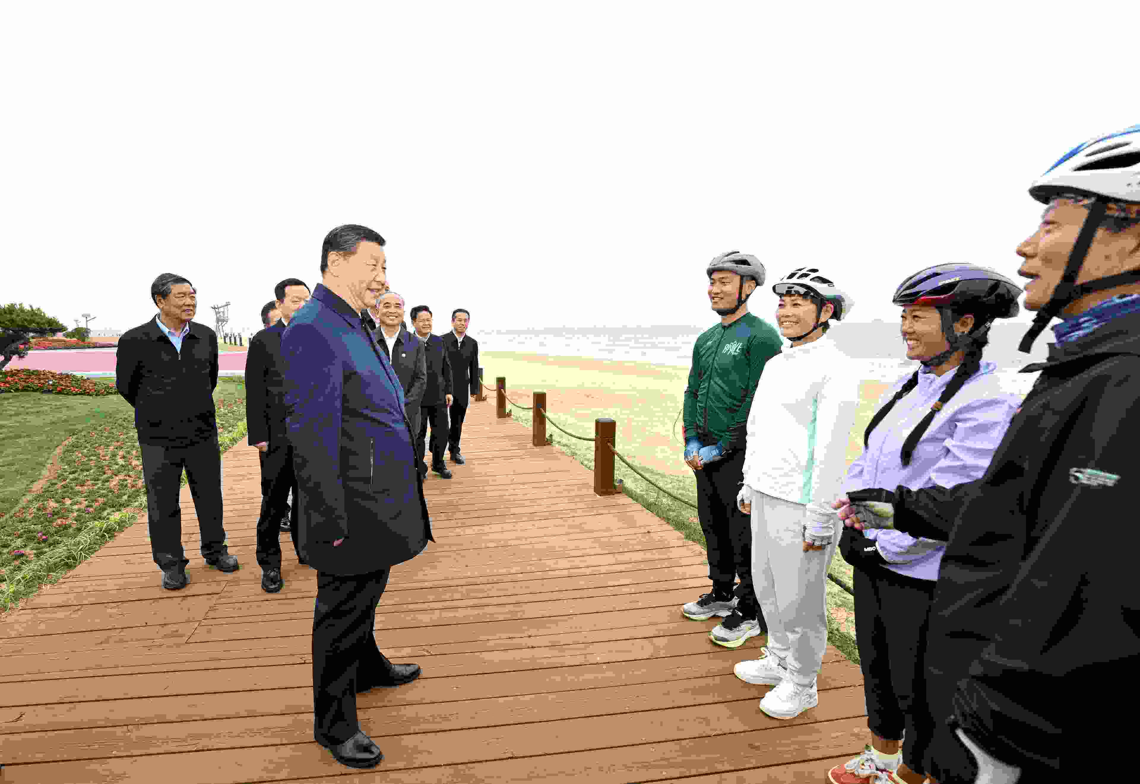 海風輕拂,碧海藍天間,一條綠道蜿蜒向前。5月22日下午,習近平總書記來到山東日照陽光海岸綠道,了解當?shù)丶訌姾0毒€生態(tài)保護修復、提高人民生活品質(zhì)等情況。