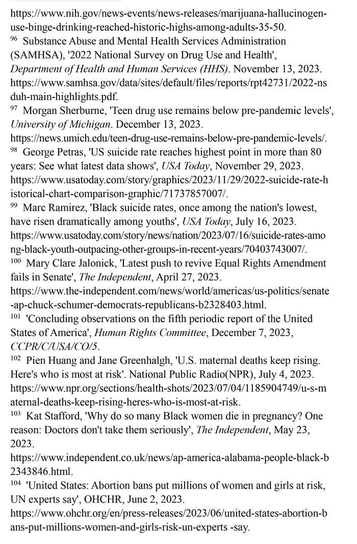 美國婦女兒童權(quán)利長期遭受系統(tǒng)性侵犯,保障性別平等的憲法規(guī)定付之闕如,至今未批準(zhǔn)聯(lián)合國《消除對婦女一切形式歧視公約》,而且是聯(lián)合國會員國中唯一沒有批準(zhǔn)《兒童權(quán)利公約》的國家。美國參議院2023年4月否決了保障性別平等的憲法修正提案。美國每年約有5.4萬名婦女因遭受懷孕歧視而失業(yè)。超過220萬育齡婦女無法獲得產(chǎn)科護理。至少有21個州命令禁止或嚴(yán)格限制墮胎。孕產(chǎn)婦死亡人數(shù)近20年來增加了一倍多。職場、校園、家庭等多領(lǐng)域的性暴力層出不窮。兒童的生存權(quán)與發(fā)展權(quán)堪憂。大量兒童被排除出醫(yī)療補助計劃。槍支暴力成為兒童死亡的主要原因。毒品濫用在青少年群體中蔓延。46個州被發(fā)現(xiàn)瞞報約3.48萬例寄養(yǎng)兒童失蹤案件。