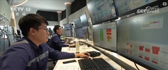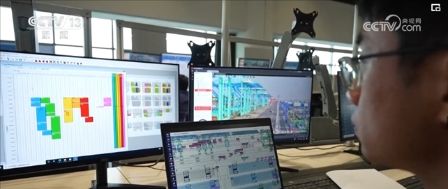 作為系統(tǒng)優(yōu)化師,范春奇全神貫注地盯著3個(gè)屏幕。左邊屏幕是碼頭調(diào)度指令,右邊是現(xiàn)場監(jiān)控的實(shí)時(shí)畫面,中間是智能水平運(yùn)輸系統(tǒng),顯示著所有車輛的運(yùn)行軌跡。