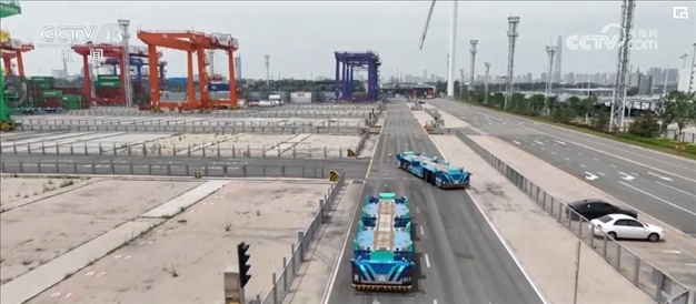 在天津港北疆港區(qū)智能化集裝箱碼頭,隨著貨輪的靠港,長達(dá)15.6米的無人駕駛運(yùn)輸機(jī)器人就忙碌起來。此時(shí),在智控中心里裝卸操控、車輛調(diào)度,一個(gè)個(gè)指令通過鍵盤、按鈕精準(zhǔn)傳達(dá)到碼頭。