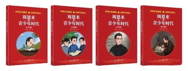 根據(jù)中共中央辦公廳印發(fā)的《關(guān)于推動(dòng)黨史學(xué)習(xí)教育常態(tài)化長(zhǎng)效化的意見》,以及教育部辦公廳印發(fā)的《關(guān)于在思政課中加強(qiáng)以黨史教育為重點(diǎn)的“四史”教育的通知》,2020年,在人民日?qǐng)?bào)社副總編輯方江山的策劃和支持下,出版社約請(qǐng)時(shí)任中國(guó)社會(huì)科學(xué)院近代史所黨委書記金民卿和周恩來(lái)侄外孫、北京大鸞翔宇慈善基金會(huì)理事長(zhǎng)沈清,主編“傳承紅色基因,培養(yǎng)時(shí)代新人”叢書。該叢書首批圖書包括《毛澤東的青少年時(shí)代》《周恩來(lái)的青少年時(shí)代》,書中截取了毛澤東、周恩來(lái)青少年時(shí)期的光輝片段,講述其成長(zhǎng)、學(xué)習(xí)經(jīng)歷和積極投身革命的艱辛歷程。同時(shí),考慮到不同年齡段學(xué)生的閱讀水平,又將圖書分為注音版、兒童版、少年版、青年版四個(gè)版本,用青少年喜聞樂(lè)見的方式,采取圖文并茂的形式,引導(dǎo)廣大青少年從小在心里深植紅色基因,樹立紅色理想。