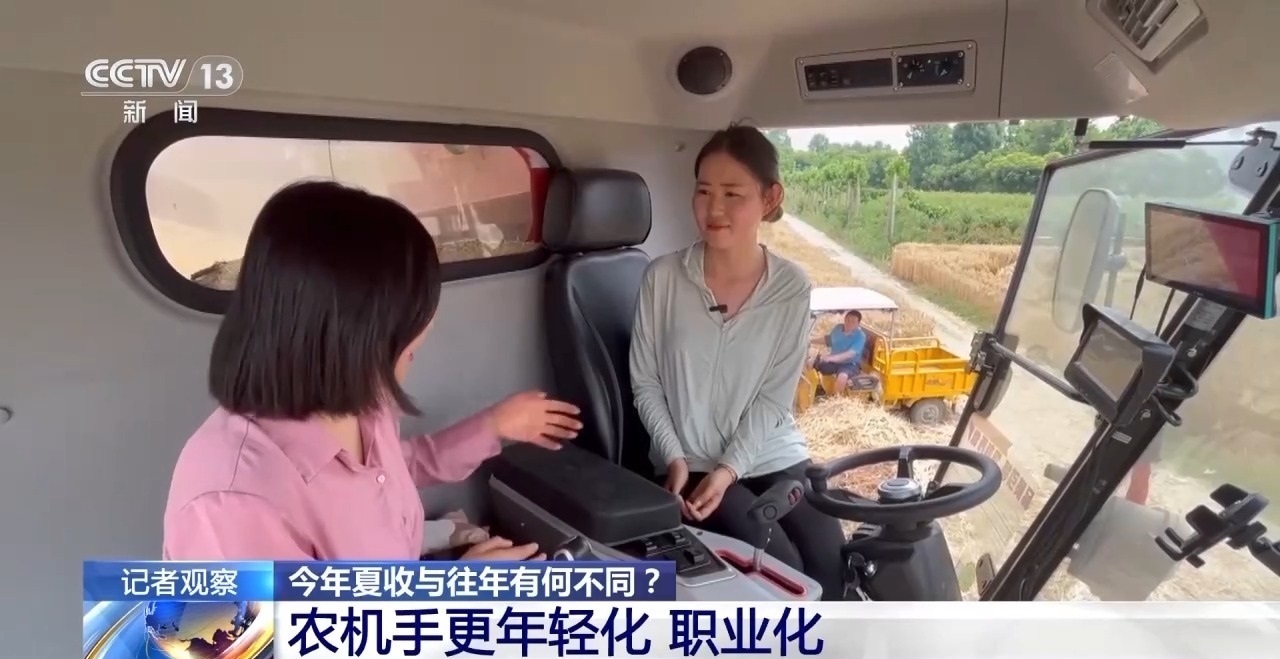 今年還有一個(gè)變化,就是不同于傳統(tǒng)的靠熟人介紹,通過線上接單的情況也越來越多了。像姜曉娜本來是安徽人,她來河南收麥子就是網(wǎng)友邀請(qǐng)她過來的。一個(gè)95后的小姑娘敢開著農(nóng)機(jī)去河南收小麥,除了佩服她一路向北勇闖天涯的勇氣,她這份勇氣背后的底氣也源于我國農(nóng)機(jī)智能化水平越來越高、農(nóng)業(yè)社會(huì)化組織越來越專業(yè)、農(nóng)業(yè)服務(wù)越來越跟得上這樣的趨勢。