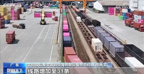 鹽田國(guó)際集裝箱碼頭海鐵聯(lián)運(yùn)服務(wù)總經(jīng)理余秋文介紹:“截至今年4月份,我們共開(kāi)通了14個(gè)海鐵聯(lián)運(yùn)內(nèi)陸港,線路增加至31條,覆蓋了大灣區(qū)、華中、西南等重要的經(jīng)濟(jì)區(qū)域。”