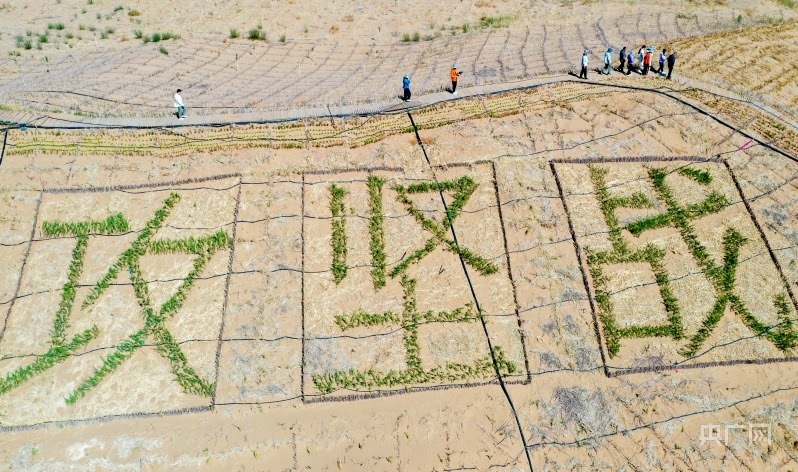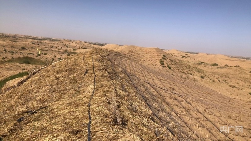 經(jīng)過幾代人艱苦卓絕地?cái)亍包S龍”、斗風(fēng)沙的大會(huì)戰(zhàn),曾被稱為“死亡之?!钡膸觳计渖衬缃衤肪W(wǎng)縱橫交錯(cuò),通過設(shè)置沙障、人工造林、飛播造林,沙漠經(jīng)濟(jì)煥發(fā)出勃勃生機(jī)。