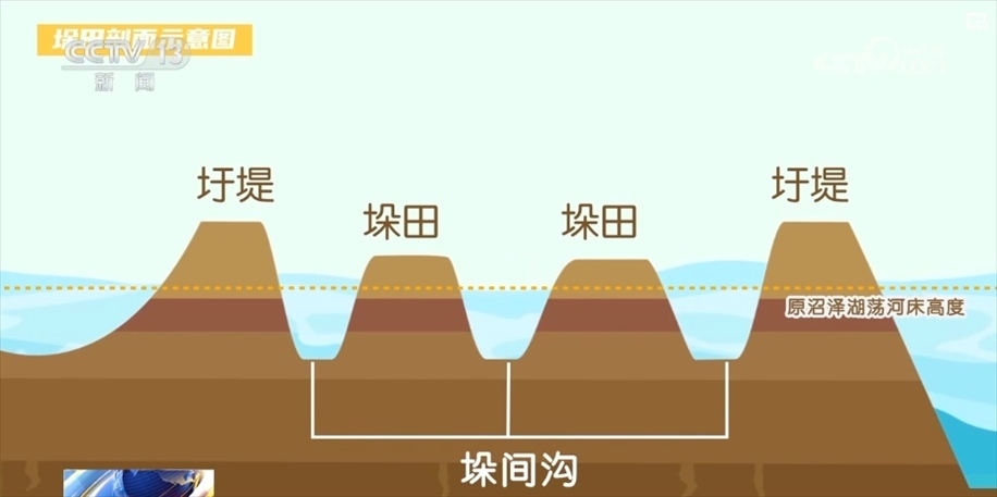 向下挖出“網(wǎng)”狀深溝、向上堆出“垛”狀高田,同樣的土量換個(gè)位置,就能將原本都在水下的地面,變成一高一低的垛田與河道,增加可耕種土地面積。