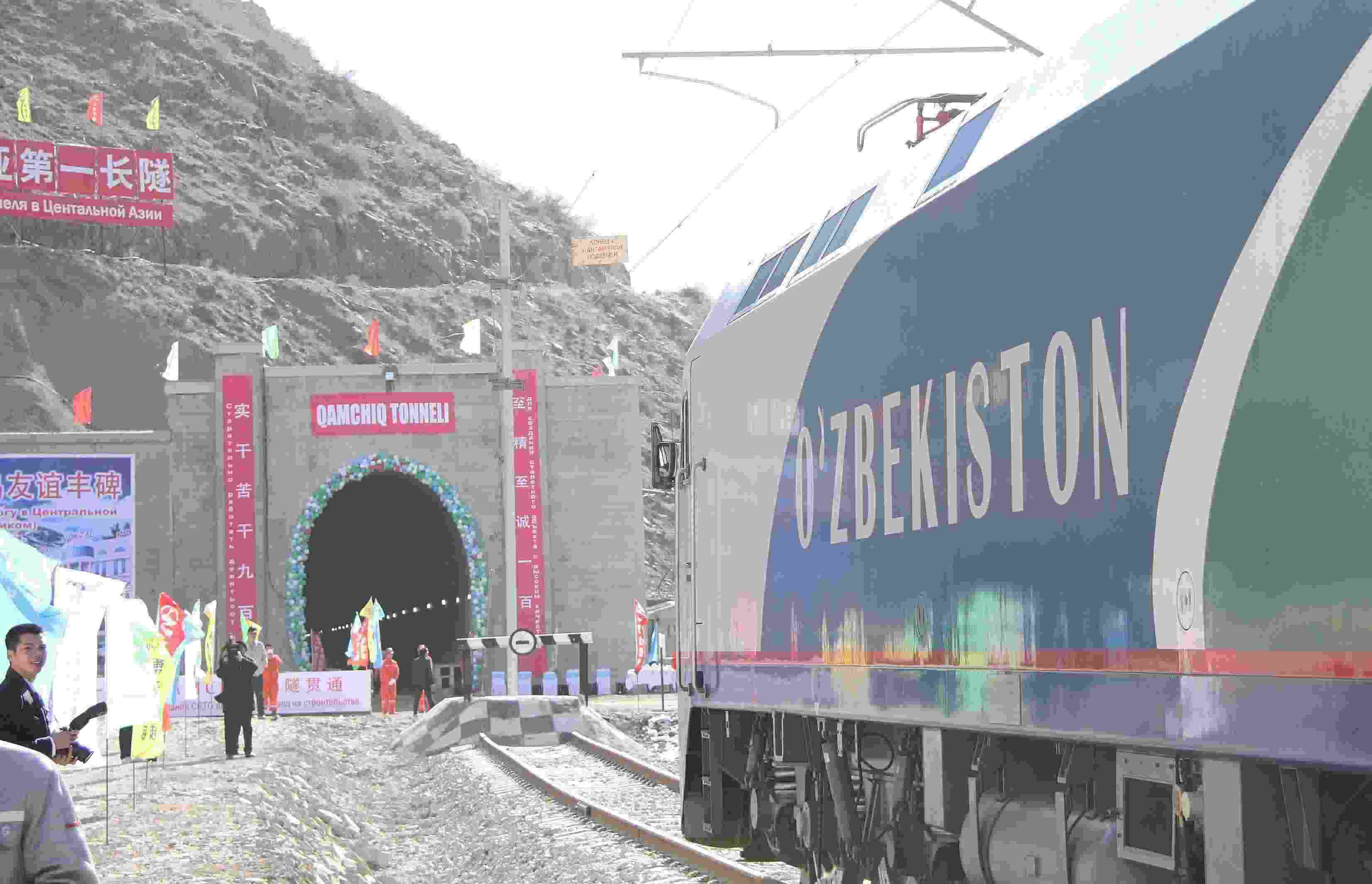△ 2016年2月27日,一列專列停在烏茲別克斯坦安格連至琶布鐵路甘姆奇克隧道進口。甘姆奇克隧道是中吉烏鐵路的重要一環(huán),對促進烏茲別克斯坦經濟社會發(fā)展和共建“一帶一路”倡議的實施具有重大意義。