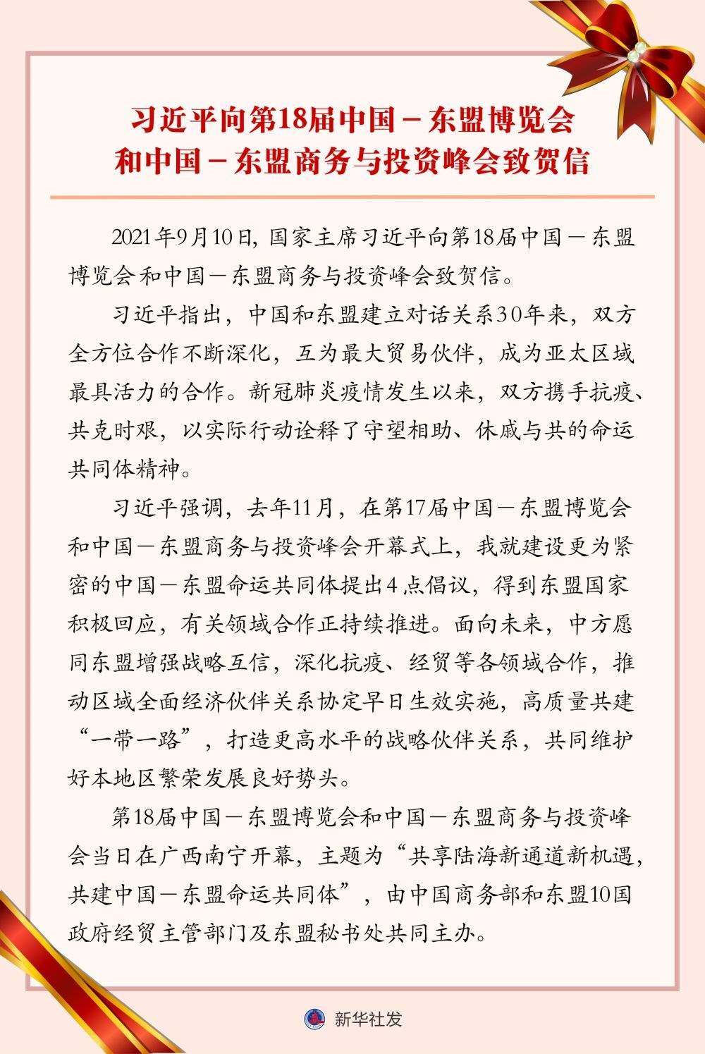 2020年和2021年,習(xí)近平主席先后為中國(guó)—東盟博覽會(huì)和中國(guó)—東盟商務(wù)與投資峰會(huì)致辭、致賀信,充分體現(xiàn)對(duì)這一合作平臺(tái)的關(guān)心和重視。