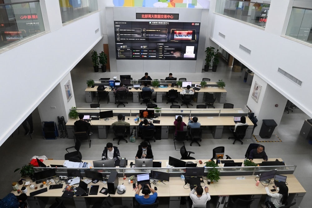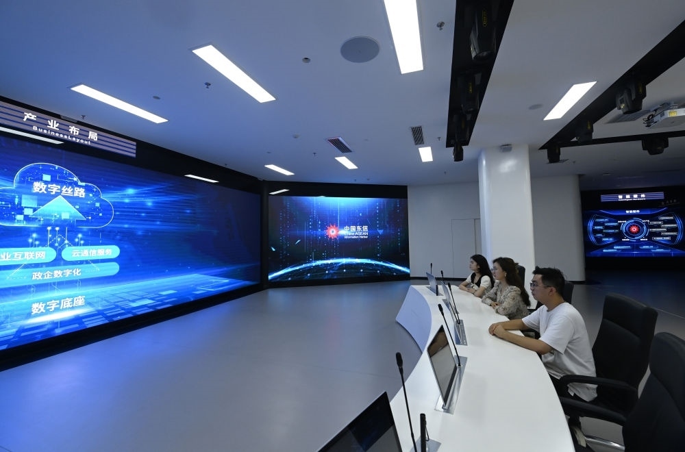 2023年12月12日拍攝的中國(guó)-東盟信息港股份有限公司內(nèi)景。歷經(jīng)多年建設(shè),中國(guó)-東盟信息港正努力打造面向東盟的國(guó)際通信大通道、大數(shù)據(jù)資源應(yīng)用服務(wù)大樞紐、新一代信息技術(shù)應(yīng)用示范高地、數(shù)字經(jīng)濟(jì)開放合作集聚區(qū)和人文交流合作中心。