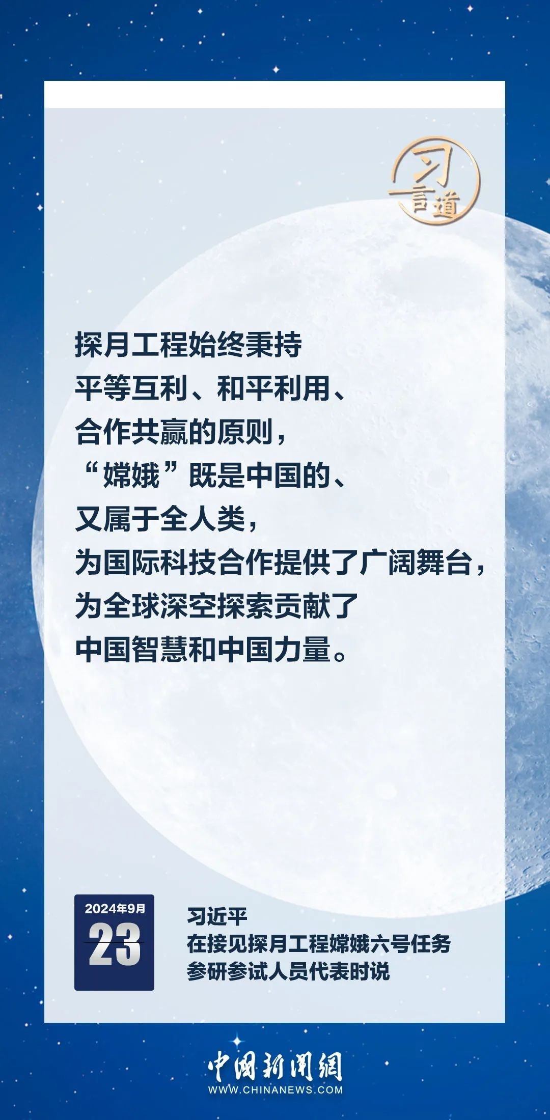 中共中央總書記、國(guó)家主席、中央軍委主席習(xí)近平23日在人民大會(huì)堂接見探月工程嫦娥六號(hào)任務(wù)參研參試人員代表時(shí)發(fā)表重要講話。習(xí)近平指出——