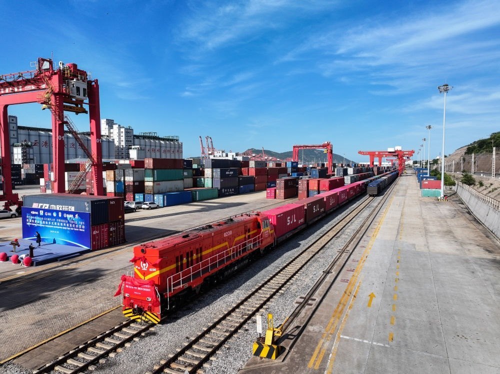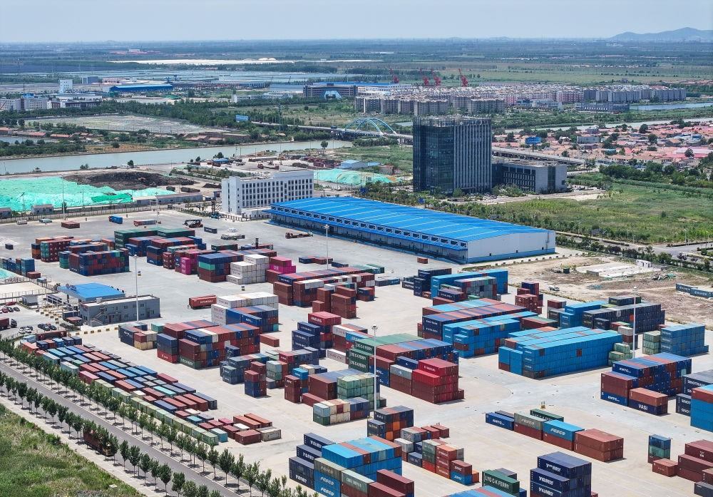 上合組織(連云港)國際物流園內(nèi)的集裝箱場站(2024年6月26日攝,無人機照片)。