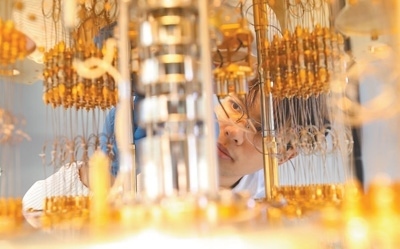 與時(shí)俱進(jìn)全面深化改革 深圳國際量子研究院超導(dǎo)量子計(jì)算實(shí)驗(yàn)室,實(shí)驗(yàn)人員正在調(diào)試稀釋制冷機(jī)。楊浩翰攝(人民視覺)