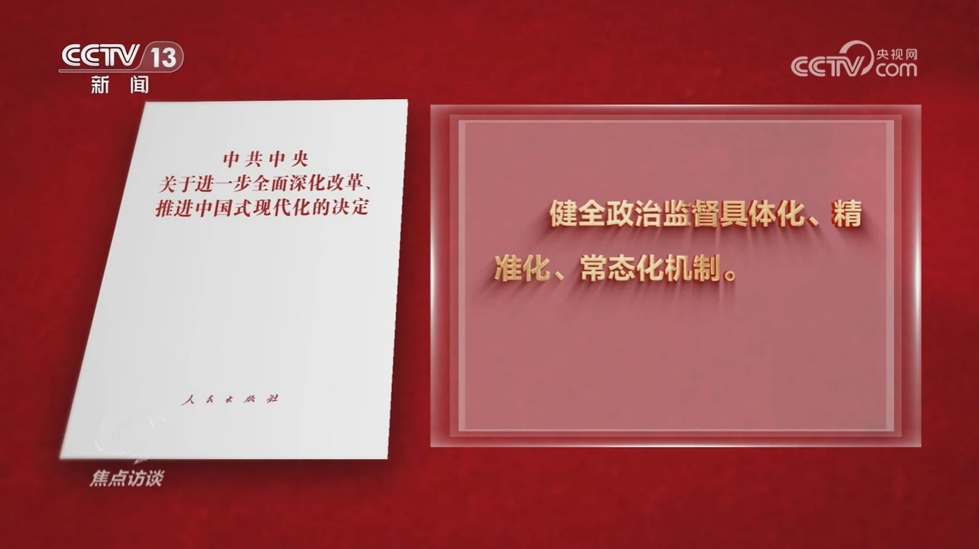 黨的作風(fēng)就是黨的形象,關(guān)系人心向背,關(guān)系黨的生死存亡。腐敗是黨長期執(zhí)政的最大威脅。新征程上,如果嚴(yán)的基調(diào)稍有放松,不正之風(fēng)和腐敗就會(huì)卷土重來,《決定》提出,健全政治監(jiān)督具體化、精準(zhǔn)化、常態(tài)化機(jī)制。