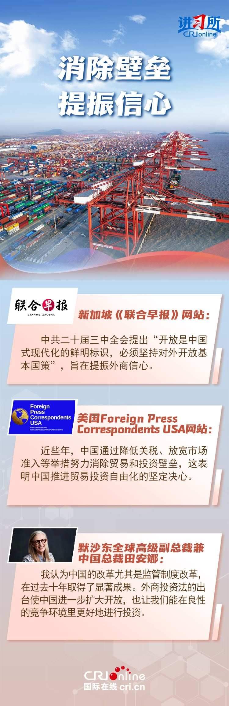 開放是中國式現(xiàn)代化的鮮明標識,也是國際社會持續(xù)關注中國全面深化改革的重點所在?!皟?yōu)化營商環(huán)境”“放寬市場準入”“144小時過境免簽”……中國高水平對外開放,既有高屋建瓴的頂層設計,又有觸及民心的靈活實踐,給世界帶來信心與機遇。