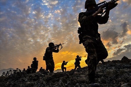 ▲ “強軍精武紅四連”官兵在陌生地域開展戰(zhàn)場搜索訓練。