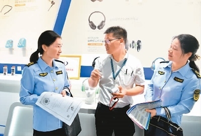 湖北省咸寧市通城縣立足企業(yè)創(chuàng)新創(chuàng)造,持續(xù)優(yōu)化營商環(huán)境。目前,該縣已建成省級知識產(chǎn)權(quán)保護站2個,幫助企業(yè)更好解決專利服務(wù)、知識產(chǎn)權(quán)融資等需求。圖為該縣經(jīng)濟開發(fā)區(qū)一家民營企業(yè)內(nèi),市場監(jiān)管工作人員在了解企業(yè)專利產(chǎn)品生產(chǎn)狀況。劉建平攝(人民視覺)