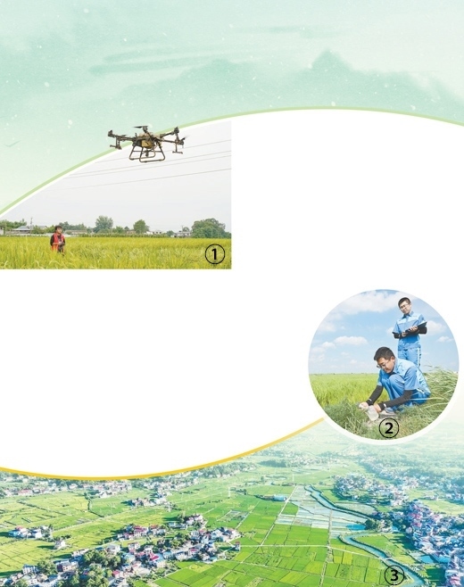 圖①:四川省綿陽(yáng)市安州區(qū)河清鎮(zhèn)同盛村雜交水稻制種基地,農(nóng)技人員操作植保無(wú)人機(jī)對(duì)水稻授粉。張祖強(qiáng)攝(人民視覺(jué)) 圖②:中化環(huán)境吉林分公司職員在大安市龍沼鎮(zhèn)龍海灌片03片區(qū)的水稻田內(nèi)取測(cè)水樣。新華社記者 李 賀攝 圖③:江西省萍鄉(xiāng)市上栗縣桐木鎮(zhèn)湖塘村鄉(xiāng)村風(fēng)光。李桂東攝(人民視覺(jué))