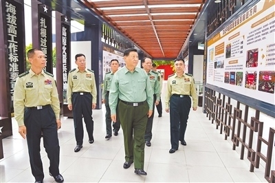 金秋十月,江淮大地山水秀麗、風(fēng)景如畫。上午11時許,習(xí)近平來到火箭軍某旅,首先察看了該旅軍史長廊。該旅是一支有著50多年光榮歷史的戰(zhàn)略導(dǎo)彈部隊。黨的十八大以來,該旅在習(xí)近平強軍思想指引下,堅定舉旗鑄魂,大抓實戰(zhàn)化訓(xùn)練,出色完成一系列重大任務(wù)。在反映部隊發(fā)展歷程、新時代全面建設(shè)的展板前,習(xí)近平詳細(xì)了解官兵學(xué)習(xí)黨的創(chuàng)新理論、加緊練兵備戰(zhàn)、弘揚優(yōu)良傳統(tǒng)等情況。