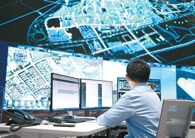 | 在天津市濱海新區(qū)中新天津生態(tài)城智慧城市運(yùn)營(yíng)中心內(nèi),工作人員在查看監(jiān)控。新華社記者 趙子碩攝 |