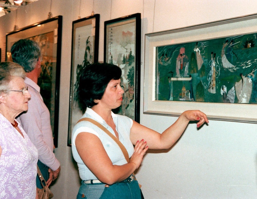 1983年5月24日至7月31日,中國(guó)經(jīng)濟(jì)貿(mào)易展覽會(huì)在巴西圣保羅和里約熱內(nèi)盧舉辦。這是巴西觀眾在展覽會(huì)上欣賞貝雕羽毛畫。