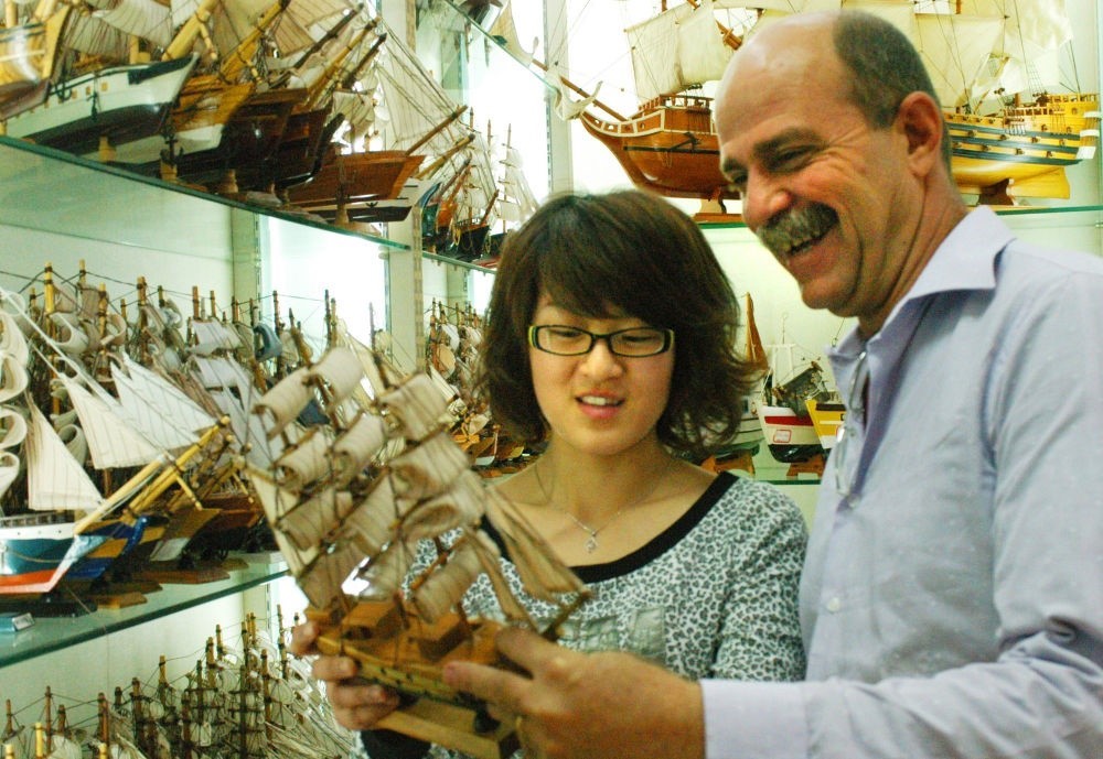 2009年3月31日,一名巴西客商在浙江義烏國(guó)際商貿(mào)城采購工藝帆船。
