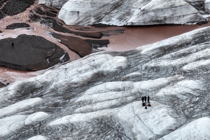 2024年7月25日,在青海省三江源區(qū)冬克瑪?shù)妆?,江源綜合科學考察隊員在探測冰川。新華社記者 伍志尊 攝