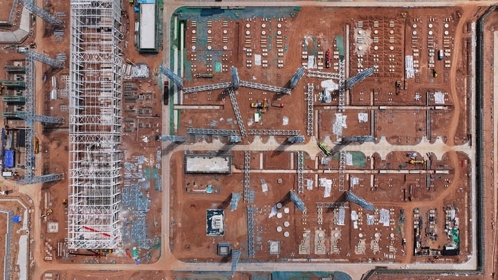 2024年7月10日,“寧電入湘”寧夏中寧換流站工程正加緊施工。新華社記者 王鵬 攝