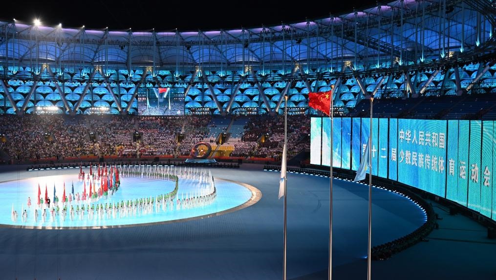 30日晚,第十二屆全國少數(shù)民族傳統(tǒng)體育運(yùn)動會(以下簡稱“運(yùn)動會”)在三亞市體育中心舉行閉幕式。全部比賽已在29日結(jié)束。過去的9天,56個(gè)民族歡聚一堂,訴說手足之情,唱響團(tuán)結(jié)之歌。本屆運(yùn)動會共設(shè)競賽項(xiàng)目18項(xiàng)149個(gè)小項(xiàng)、表演項(xiàng)目三大類170個(gè)小項(xiàng)。近7000名各族運(yùn)動員團(tuán)結(jié)拼搏、友好互助,在競賽和聯(lián)歡中加深情誼,寫下共赴美好生活的新篇章。