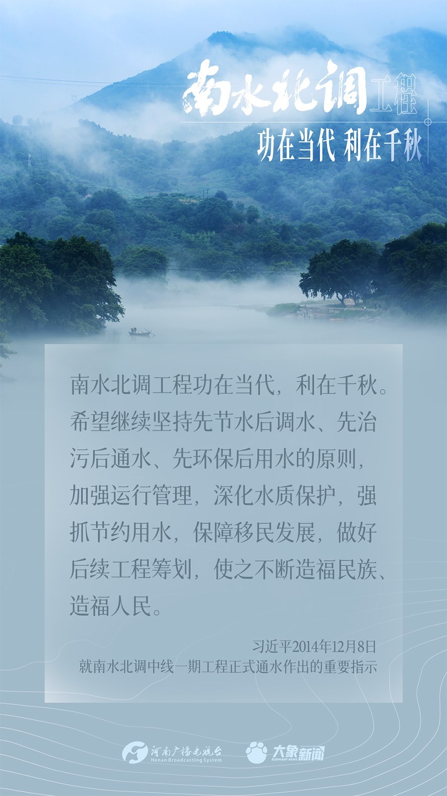 今年是南水北調(diào)東、中線一期工程通水10周年。南水北調(diào)工程事關(guān)戰(zhàn)略全局、事關(guān)長遠(yuǎn)發(fā)展、事關(guān)人民福祉,一直是習(xí)近平總書記的牽掛。黨的十八大以來,總書記多次實地考察項目進(jìn)展、運(yùn)行,作出重要講話重要指示批示,為南水北調(diào)工程持續(xù)高質(zhì)量發(fā)展指明方向。