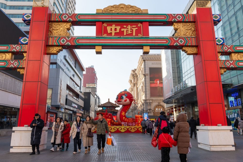 2025年1月22日,游客在沈陽(yáng)中街逛街。