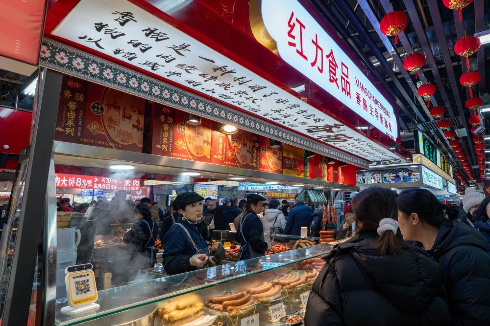 2025年1月22日,游客在沈陽(yáng)故宮非遺年貨市集游覽消費(fèi)。