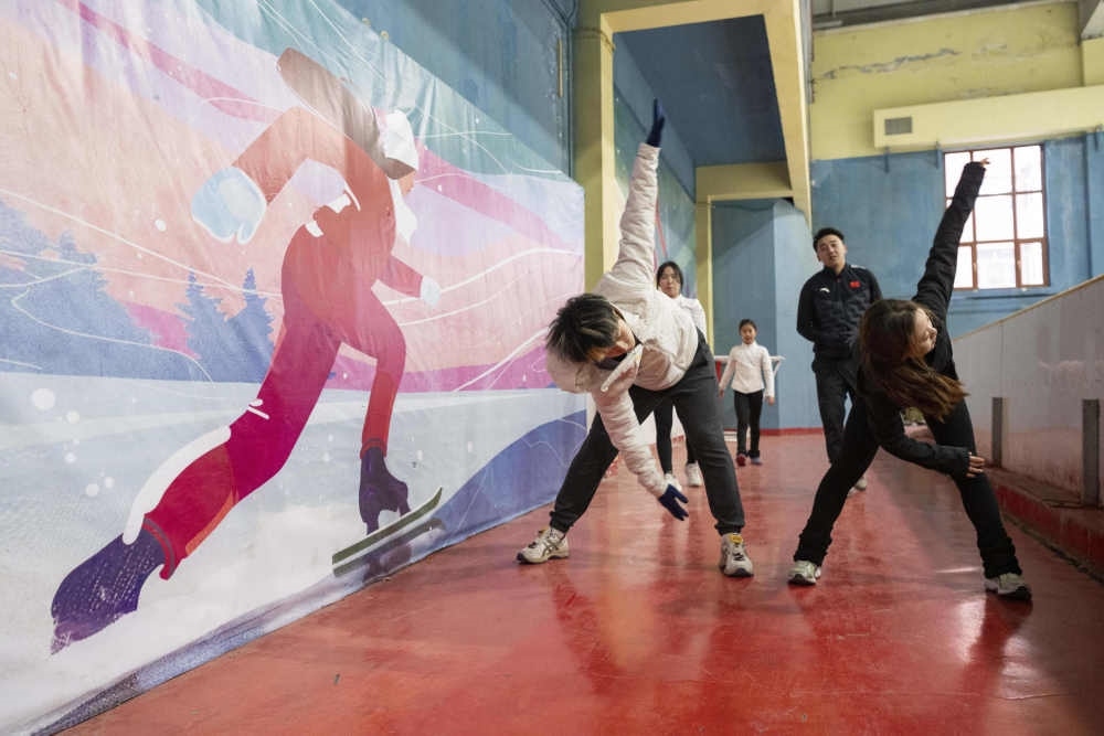 2023年3月14日,一名中學(xué)體育老師在河北張家口冰之夢滑冰場指導(dǎo)學(xué)生。在張家口這座“冬奧之城”,市民百姓參加冰雪運動已經(jīng)蔚然成風(fēng),“全季全體育”理念發(fā)展成為城市新名片。