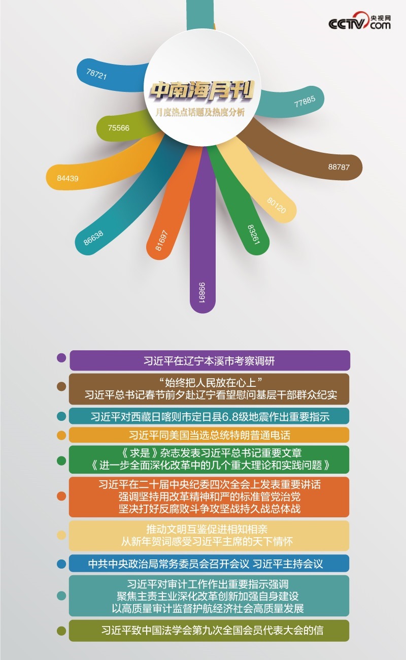 央視網(wǎng)《中南海月刊》運用智能大數(shù)據(jù),與您一起回顧習(xí)近平總書記2025年的元月足跡。
