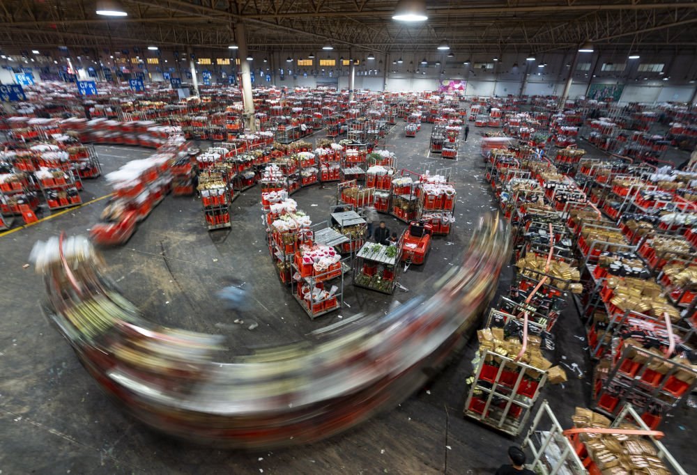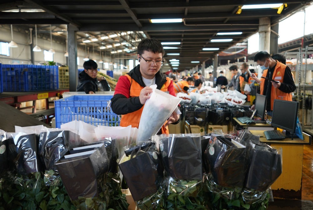 2022年11月11日,工作人員在昆明斗南花市給鮮花貼標(biāo)簽??爝f物流時(shí)效不斷優(yōu)化、冷鏈運(yùn)輸技術(shù)持續(xù)提升,也為中國鮮花加速“出海”保駕護(hù)航。