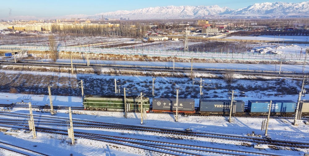 2024年12月25日,一列中歐班列經霍爾果斯口岸駛向哈薩克斯坦(無人機照片)?;魻柟箍诎兜靥幰晾绻_克自治州、毗鄰哈薩克斯坦,是古絲綢之路北道上的千年驛站,也是近現代對外開放的百年口岸,更是我國面向中亞、西亞乃至歐洲的重要物流通道。2024年,該口岸中歐(中亞)班列開行量達8730列,同比增長12.5%;貨物過貨量達1208.4萬噸,同比增長10.9%;通行班列線路總數超過80條,輻射境外18個國家的46個城市。