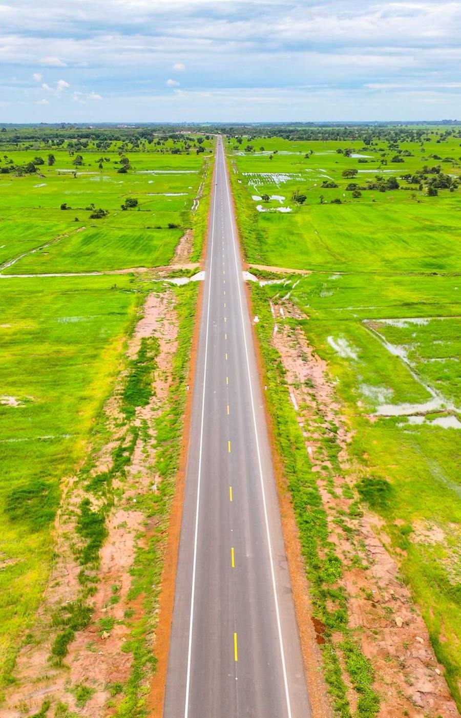 這是2024年7月14日在柬埔寨特本克蒙省拍攝的71C號國家公路(無人機照片)。新華社發(fā)(尼多拉攝)