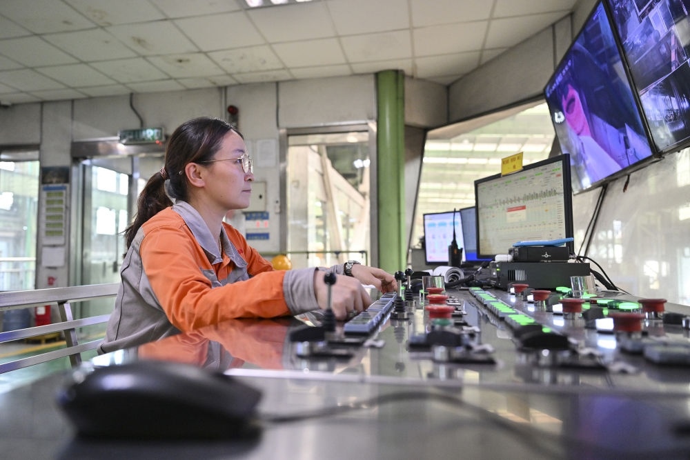 2024年6月13日,在馬來西亞彭亨州馬中關(guān)丹產(chǎn)業(yè)園聯(lián)合鋼鐵(大馬)集團(tuán)公司工廠,中國(guó)員工在智能控制室工作。