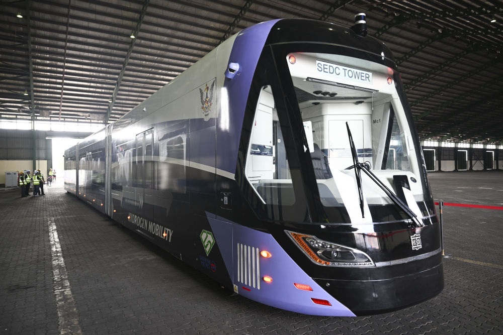 2023年,由中車株洲電力機(jī)車研究所有限公司自主研發(fā)制造的氫能源智軌電車在馬來西亞沙撈越州古晉市開啟試跑。