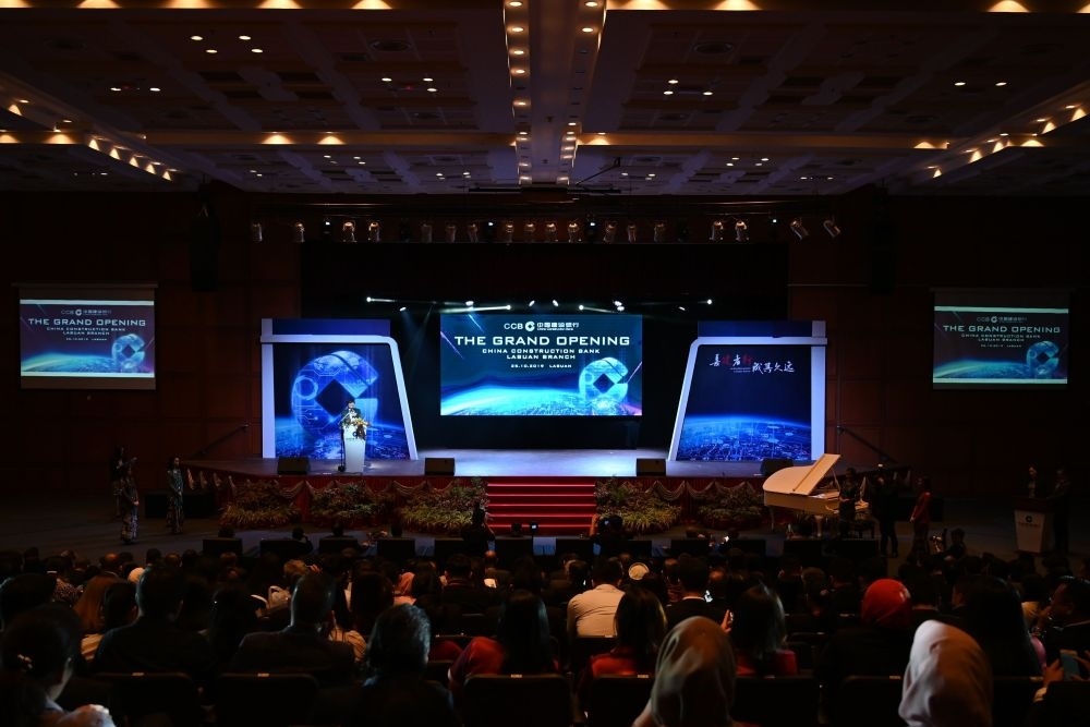 2019年10月25日,中國(guó)建設(shè)銀行納閩分行在馬來西亞納閩開業(yè),該分行獲得了馬來西亞首塊數(shù)字銀行牌照和中國(guó)建設(shè)銀行在東南亞首張人民幣清算行牌照。這是開業(yè)儀式現(xiàn)場(chǎng)。