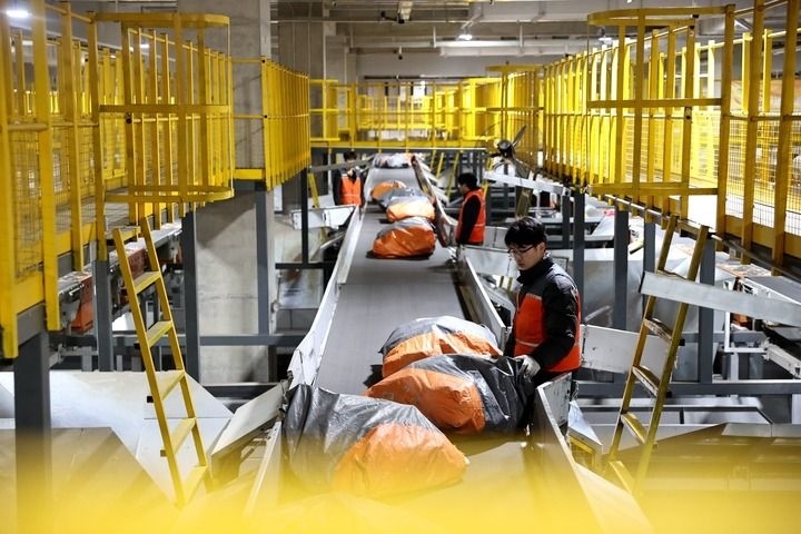 工人在河北省固安縣的申通快遞華北轉(zhuǎn)運中心內(nèi)工作(2025年2月26日攝)。新華社記者 王曉 攝