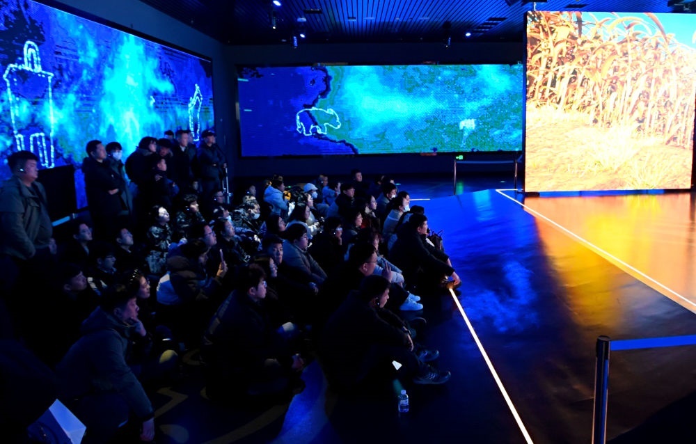 2025年2月21日,游客在安陽殷墟博物館新館數(shù)字展廳內(nèi)觀展。