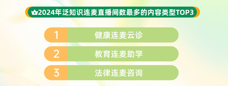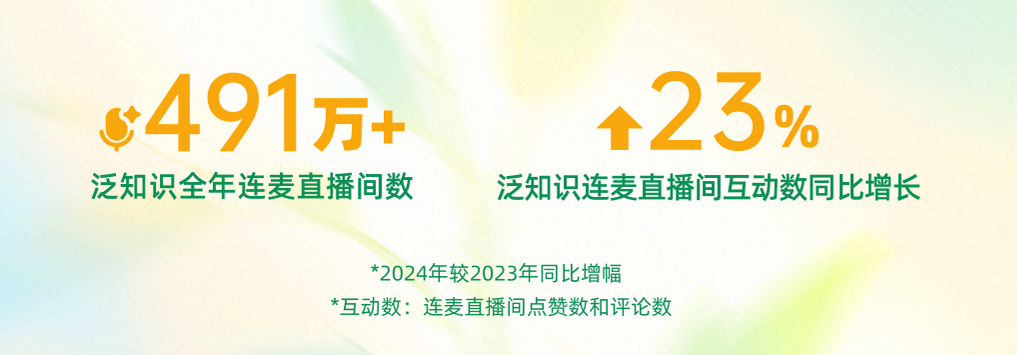隨著用戶互動與創(chuàng)作者投稿形成正向循環(huán),推動生態(tài)雙向繁榮,連麥學(xué)習(xí)正重塑知識普惠的全新范式。數(shù)據(jù)顯示,2024年,快手泛知識連麥直播場次達(dá)491萬場,直播間互動量同比提升23%,健康咨詢、教育助學(xué)、法律咨詢位列連麥內(nèi)容前三?! ?/p>