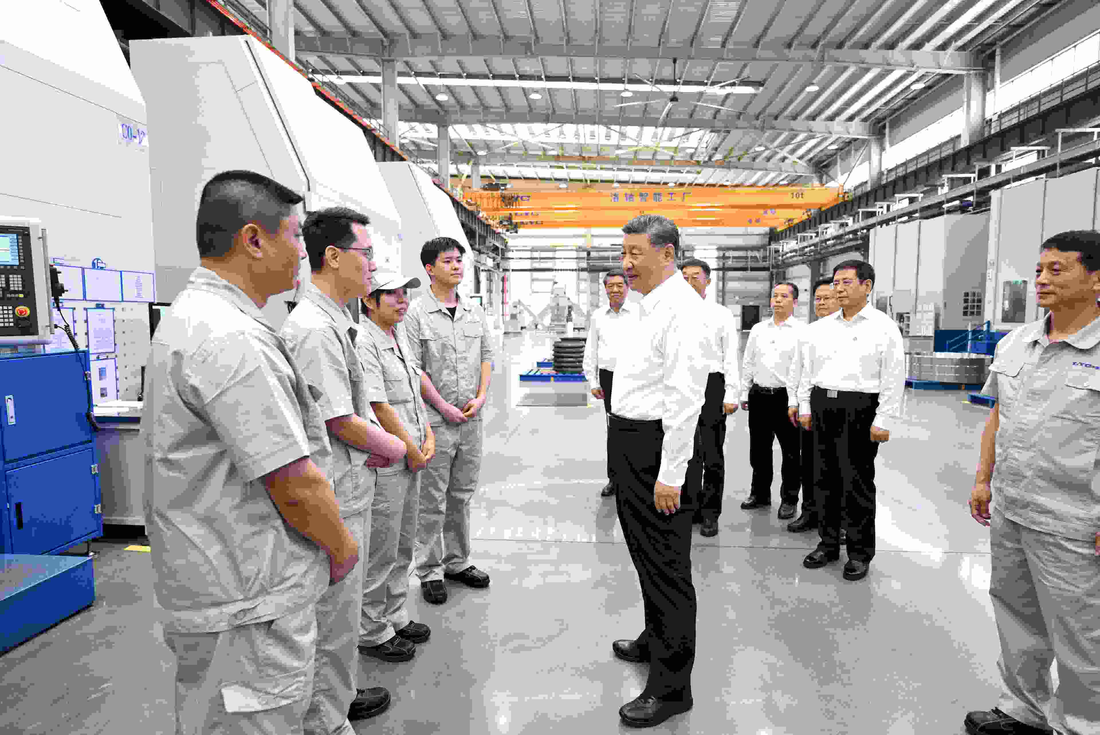 △5月19日,習(xí)近平總書記在河南洛陽軸承集團(tuán)股份有限公司智能工廠考察時(shí),同企業(yè)職工親切交流。