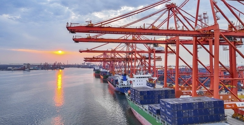 6月16日,輪船停泊在河北唐山港京唐港區(qū)集裝箱碼頭作業(yè)(無人機照片)。5月份,全國規(guī)模以上工業(yè)增加值同比增長5.8%。