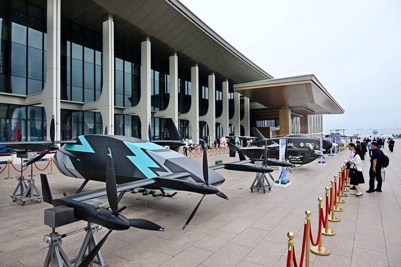 6月19日,人們在第六屆跨國公司領導人青島峰會室外展場參觀。