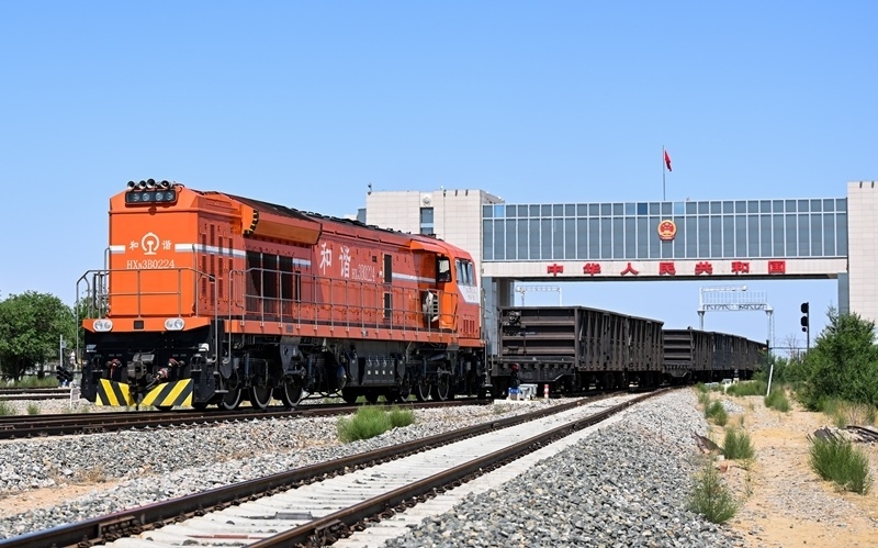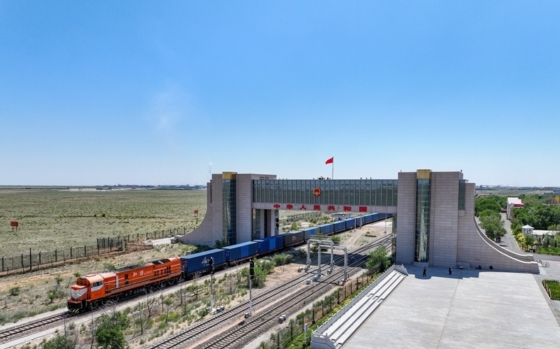 6月22日,一列中歐班列通過(guò)內(nèi)蒙古二連浩特鐵路口岸入境。
