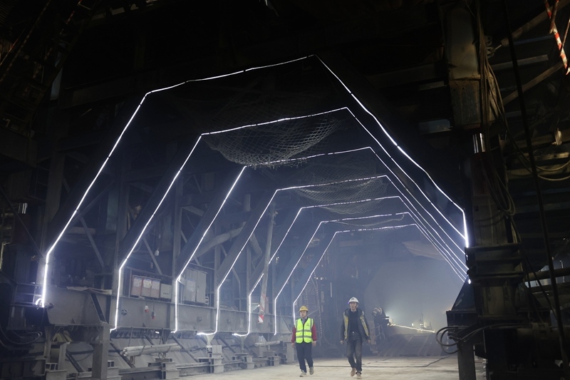 6月29日,工人從已經(jīng)貫通的西成鐵路西科隧道內(nèi)走過。