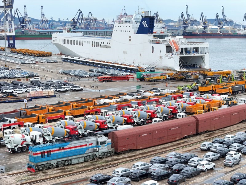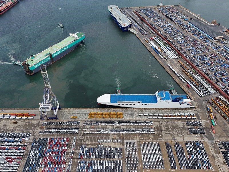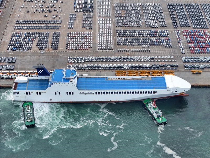 連日來,在山東港口煙臺港,大批出口車輛集結(jié)待發(fā),汽車運輸船穿梭往來,一派繁忙景象。今年1—5月,煙臺港完成商品車運量29.6萬輛。目前,煙臺港已實現(xiàn)全球主要商品車碼頭全覆蓋、全聯(lián)通,形成“以航線帶貨源、以貨源促航線”的良性循環(huán)。