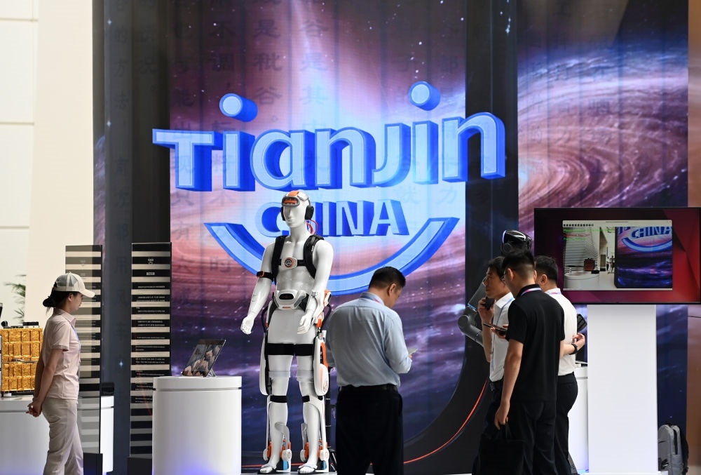 6月25日,在國家會展中心(天津),嘉賓在天津展區(qū)參觀。新華社記者 趙子碩 攝