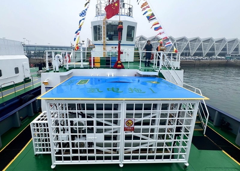 6月26日,國內首艘氫電拖輪——“氫電拖1”輪在山東港口青島港入列。該拖輪搭載“氫燃料電池+液冷鋰電池”混動系統(tǒng),可實現(xiàn)零碳排放。據(jù)介紹,與傳統(tǒng)燃油拖輪相比,“氫電拖1”輪在噪音控制、設備壽命、能源利用效率等方面優(yōu)勢顯著。該輪投產后,預計每年可減少二氧化碳排放1500余噸。