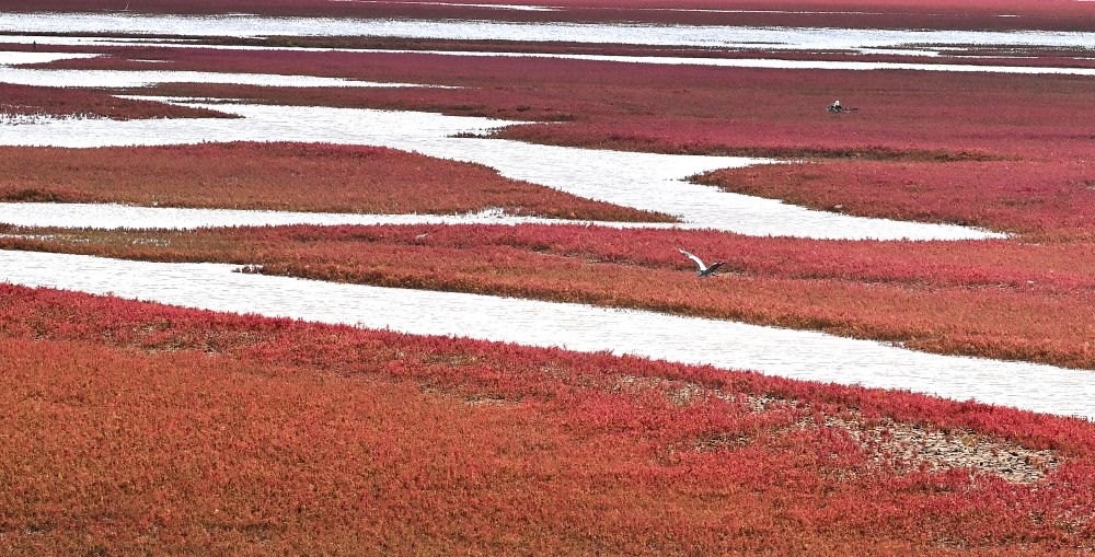 盤錦遼河口潮間帶,堿蓬草向陽生長。堿蓬草不僅能固碳,還能抵御海浪侵蝕。盤錦市自然資源局副局長孫磊蹲在灘邊說:“堿蓬草對生態(tài)環(huán)境很敏感,以前自然岸線破壞、海水鹽度變化曾使堿蓬草大量減少,如今,大片堿蓬草到秋天就會變紅,這是生態(tài)向好的最佳信號?!?/p>